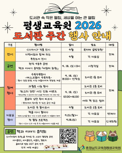 충남평생교육원 2026 도서관 주간 행사🖼 전시: 디카시 / 추천도서 (4월, 각 장소)🎵…