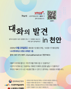《대화의 발견 in 천안》✅ 일시 : 2025년 9월 20일(토), 09:30~12:00 (1차) / 14:30~17:00 (2차)✅ 장소 :…