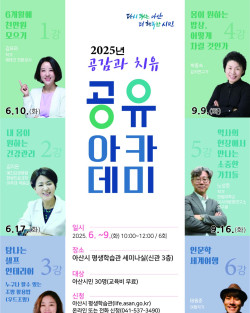 2025 공감과 치유 《공유아카데미》✅ 일시 : 2025.06월 ~ 09월✅ 대상 : 아산시민(수강료 무료) / 프로그램별 30명✅ 장소 : …