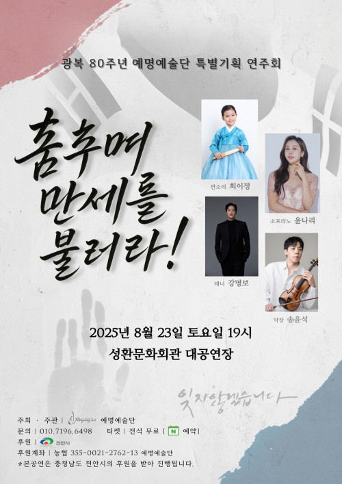 광복 80주년 예명예술단 특별기획 연주회 ✅ 일시 : 2025. 08. 23…